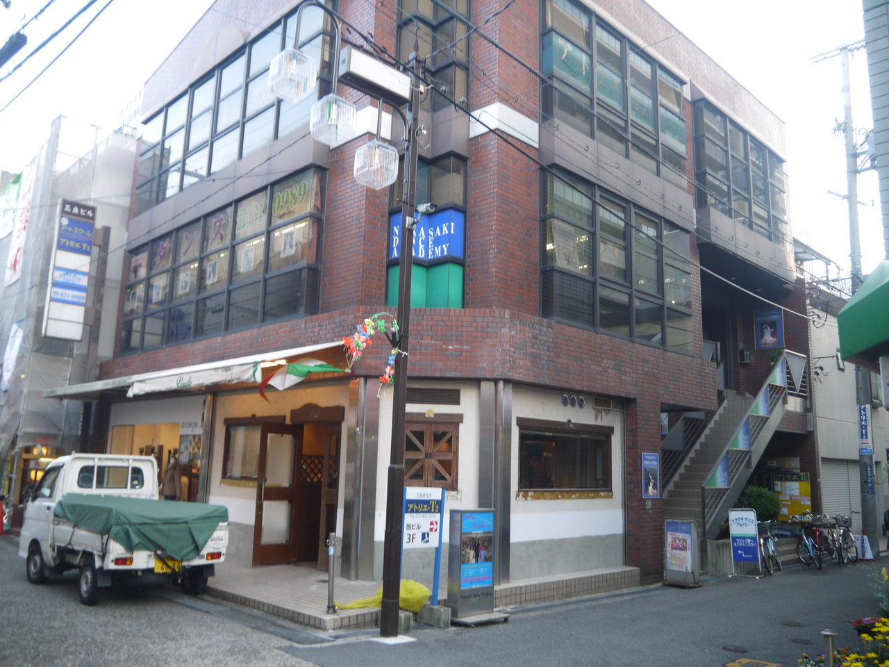 香里駅前通商店街に面しています(写真左)。つきあたりに見えているのは、マンションのサンメゾン香里園エルグレースです。