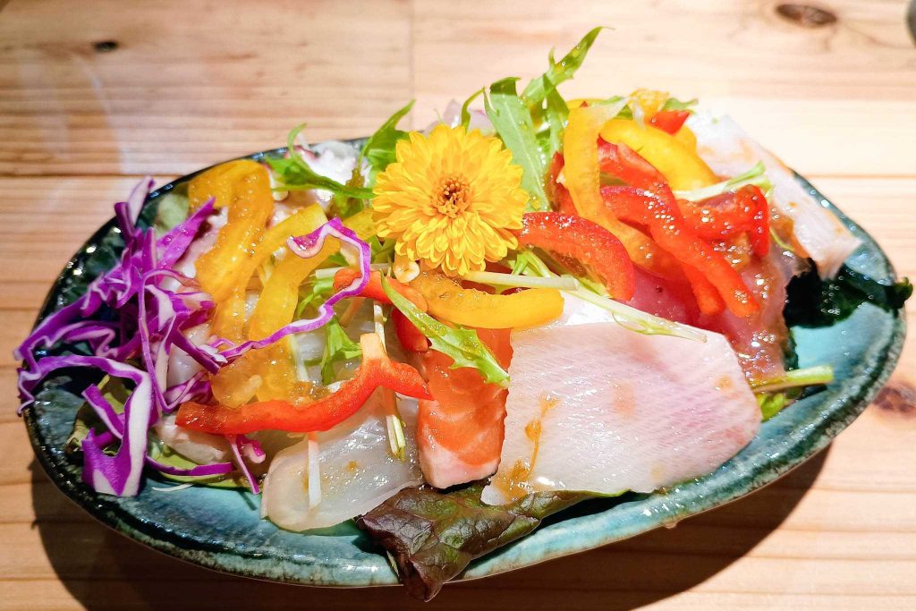 きました!海鮮サラダ。ハーフで頼んだのですが、「初めてだからサービスしたよ~」とモリモリにしてくださいました!