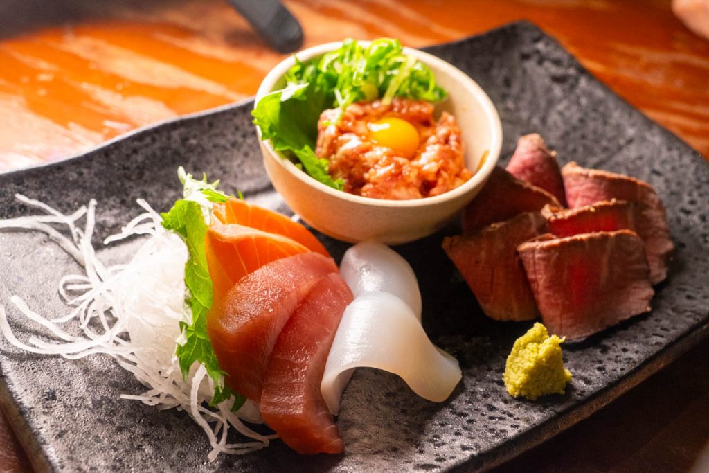 最後にもう1回海鮮3種やさくらユッケ、ローストビーフを頼んだりして、