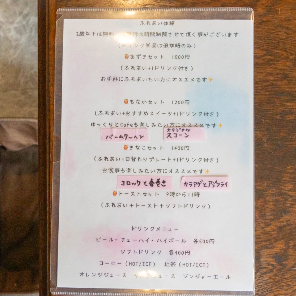 メニューとふれあい時の注意。ごはんメニューもあります。