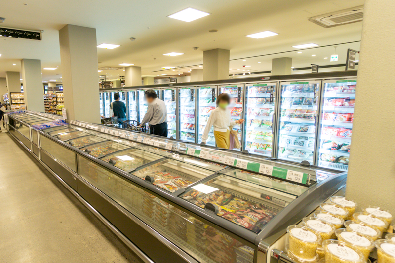 続いて冷凍食品コーナー。この写真に写っているショーケース、前から後まで全部冷食!