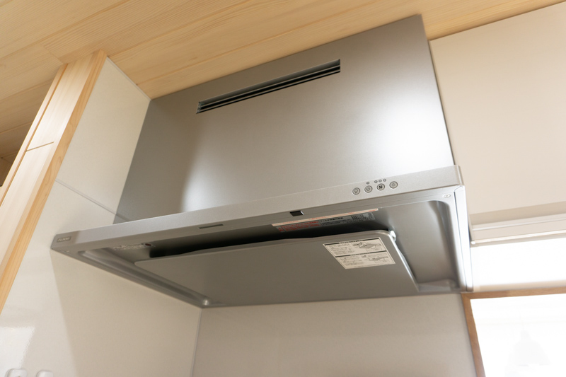 負圧状態が続くと熱交換型1種換気の換気計画にも影響が出る事からT様邸では循環式レンジフードを採用しました。