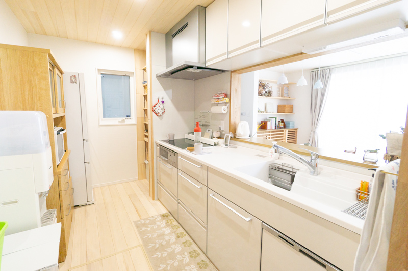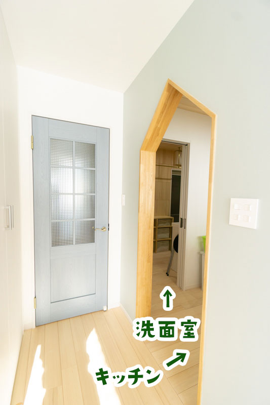 「家事動線をよくするために、キッチンを洗面室のとなりにして行き来しやすいようにしています」