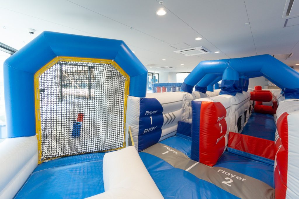 エアー遊具で障害物競走をする新感覚のアスレチックです。
