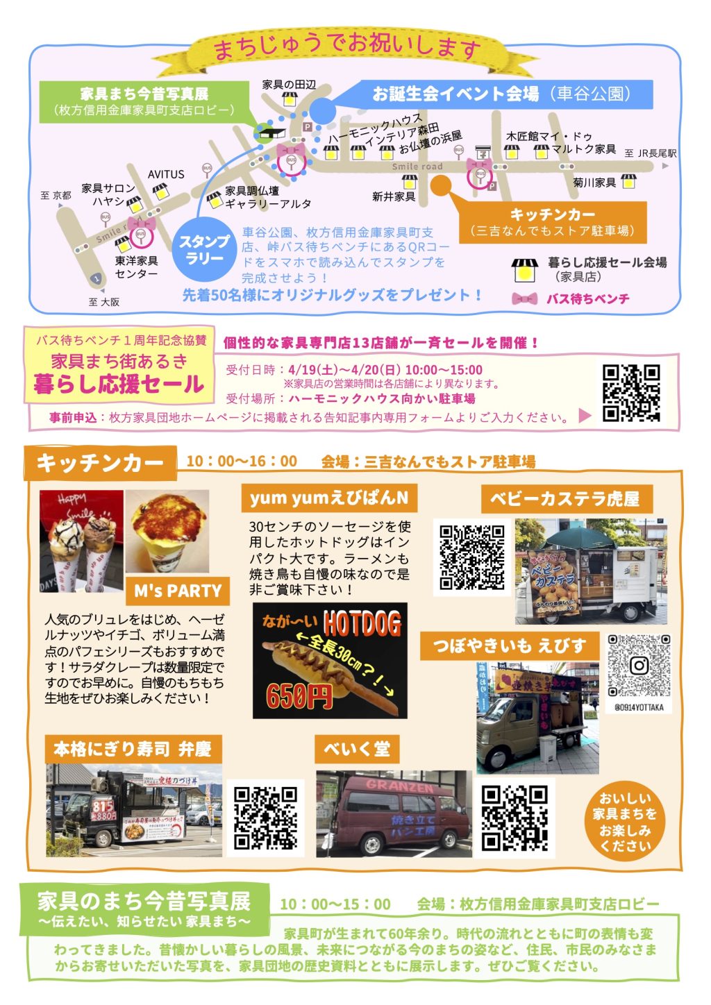 4/20の同日開催イベント「家具のまち バス待ちベンチ 1周年お誕生会」のキッチンカーでも、お買い物券利用できます↓