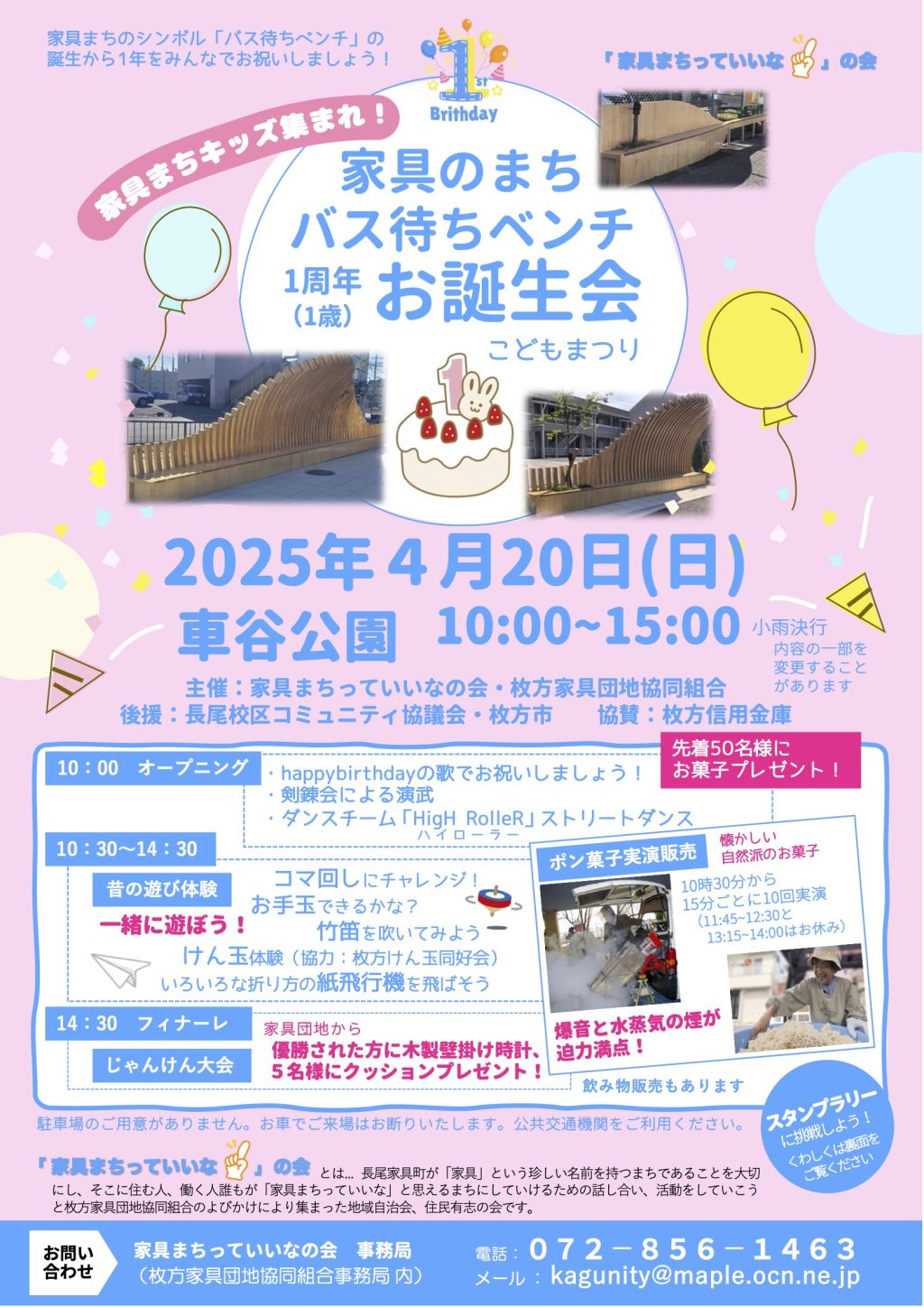 「家具のまち バス待ちベンチ 1周年お誕生会」