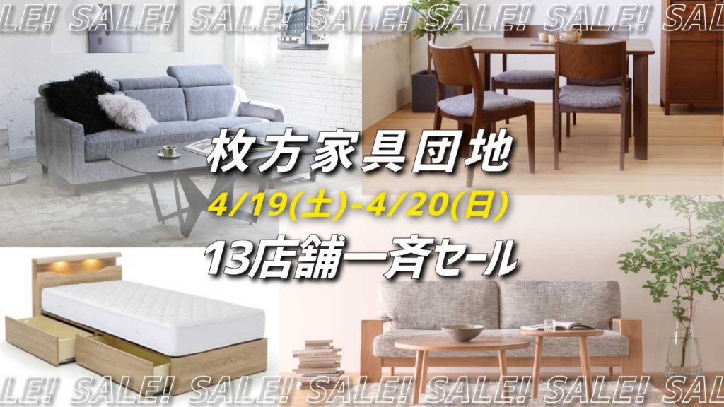 最大70%OFF「家具まち街あるき 暮らし応援セール」4/19(土)-4/20(日)開催【ねやつー広告】