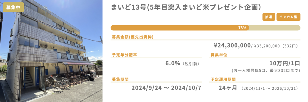 新ファンドのまいど13号も今日から募集開始ということで、なにわファンドが気になった方はぜひ資料請求してみてください♪
