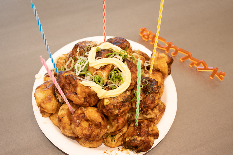 名前のなにわにちなんで、 728(なにわ)g分の大阪名物 たこ焼きでお祝いしましょー♡」