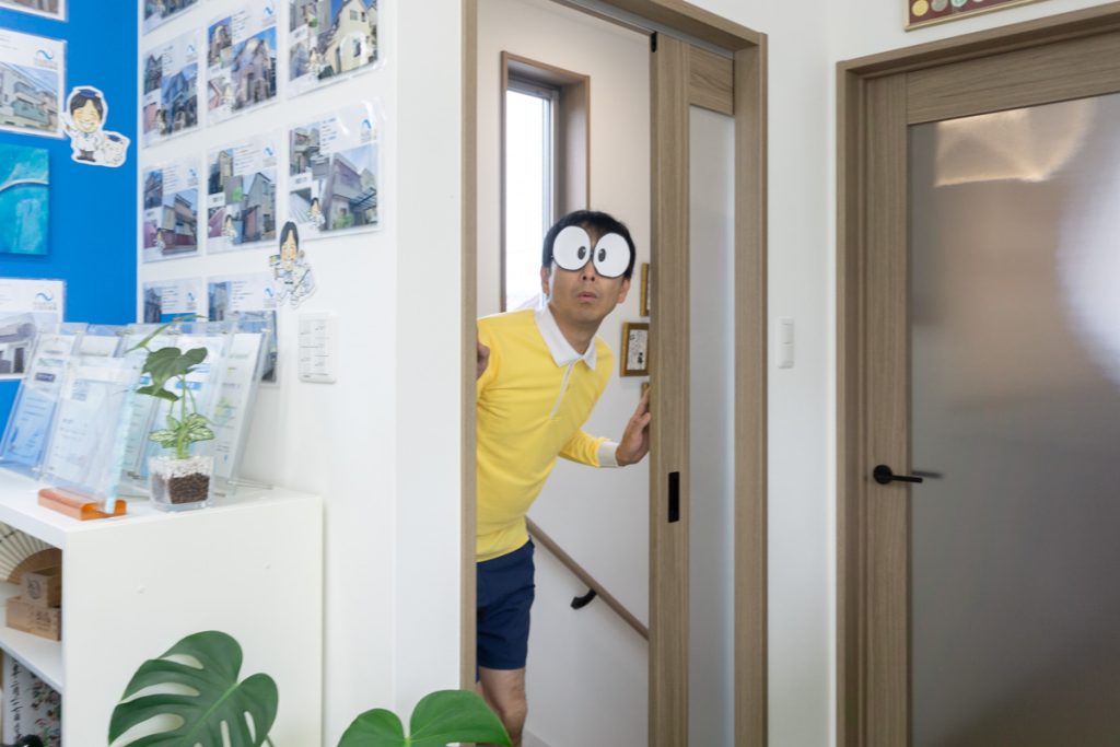 外壁のひび割れを見てド◯えもんに助けを求めているのはシュン太くん。