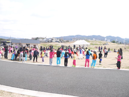 コース横で踊っているピンクチャイルドの皆さん。生で見るのは初めてです。