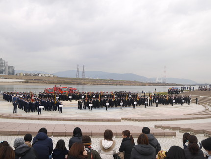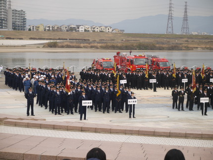 新春恒例の消防出初式が淀川河川公園枚方地区で1月11日、行われました!