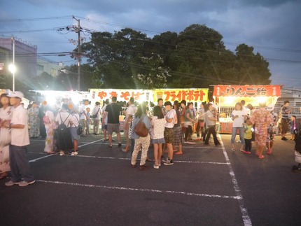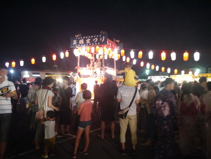 飛び入り参加自由の大盆踊り大会です。たくさんの人が雰囲気を味わうべく聞き入っています。
