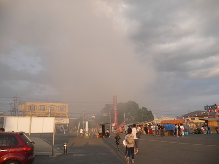 いったい何が行われているのでしょうか。煙の発生源の「笑魂塚」前に行ってみましょう!