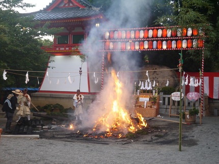 この後も火は小さく焚かれ、笑魂まつりが終わるまで続けられた模様です。