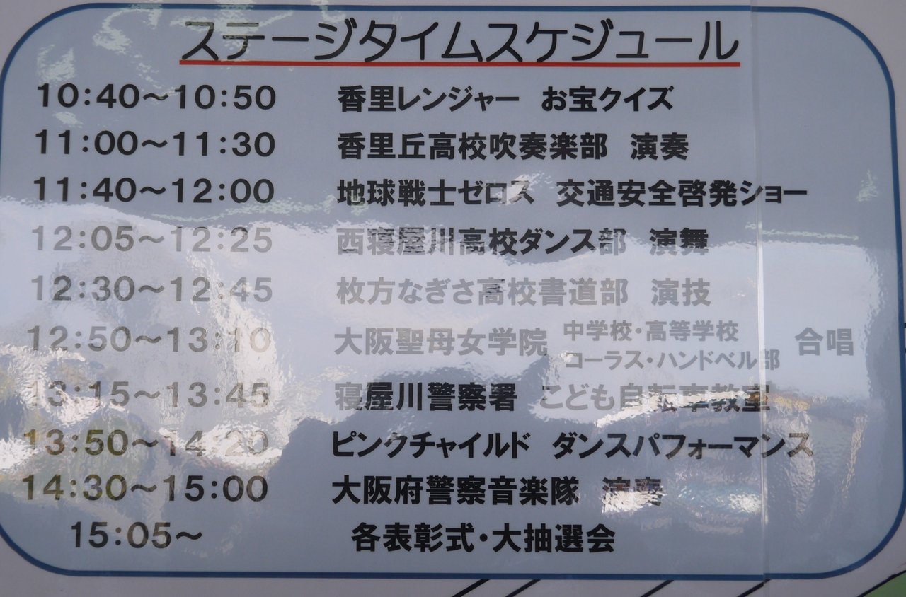 メインとなるのが、こちらのステージ。西寝屋川高校ダンス部やピンクチャイルドなどが各自の出し物を披露するわけですが…、