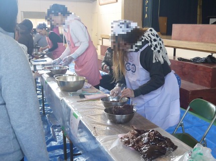 それができたら、体育館の舞台の方にあるこちらへ来て味付けです。