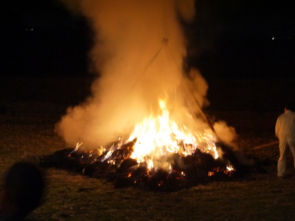 焚火状態になっても、すぐには消えません。藁が残っている限り、燃え続けます。この時間の方が長かったと思います。