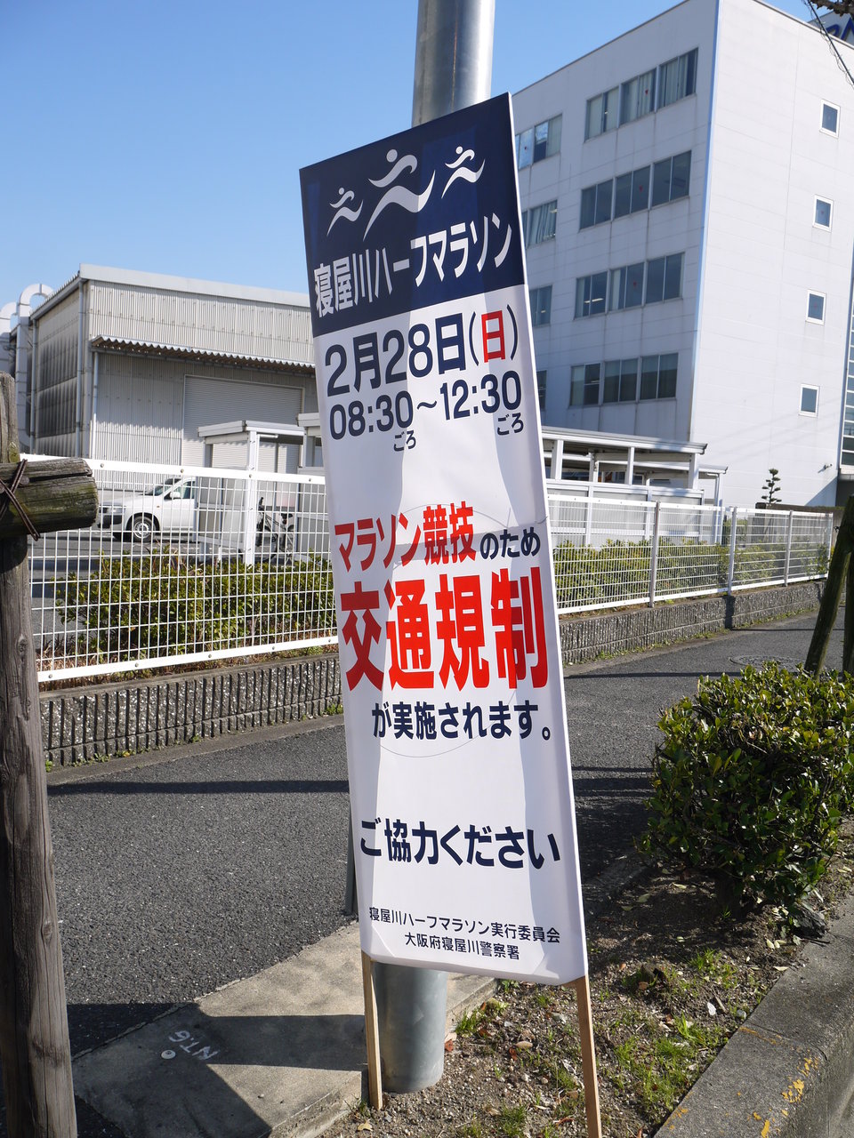 マラソンコースは極力幹線道路を避けるルートが取られている(第二京阪道路は歩道のある副道がルートなので、通過交通に大きな影響はない)ものの、午前中(8:30ごろ~12:30ごろ)に交通規制が実施されるため、注意が必要です。(マラソン大会は雨天決行。)