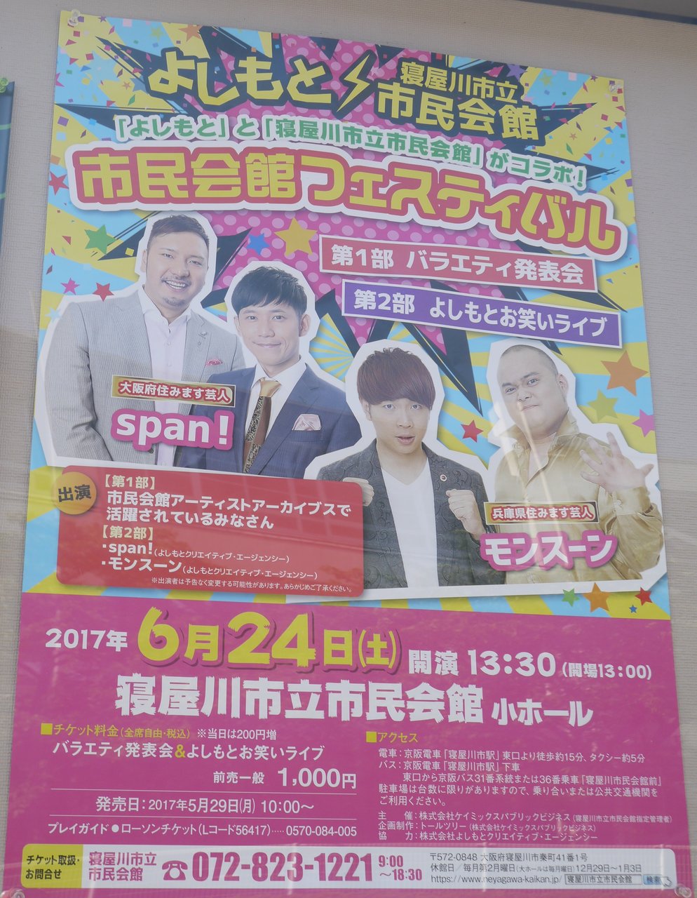 当日は大阪府&兵庫県住みます芸人の「span!」や「モンスーン」などのお笑いライブが披露される予定です。