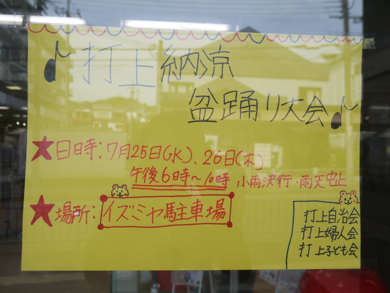 打上自治会、打上婦人会、打上子ども会が行う夏祭りです。イズミヤの駐車場が盆踊り会場になります。東寝屋川駅周辺にお住まいの方は、レッツゴーです。