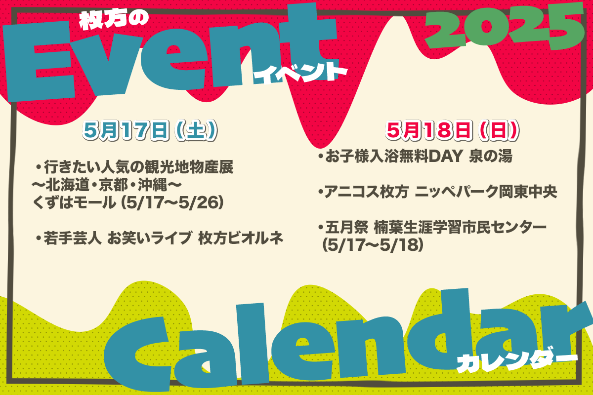 寝屋川市内と近隣のGWに行きたいイベントをまとめました。