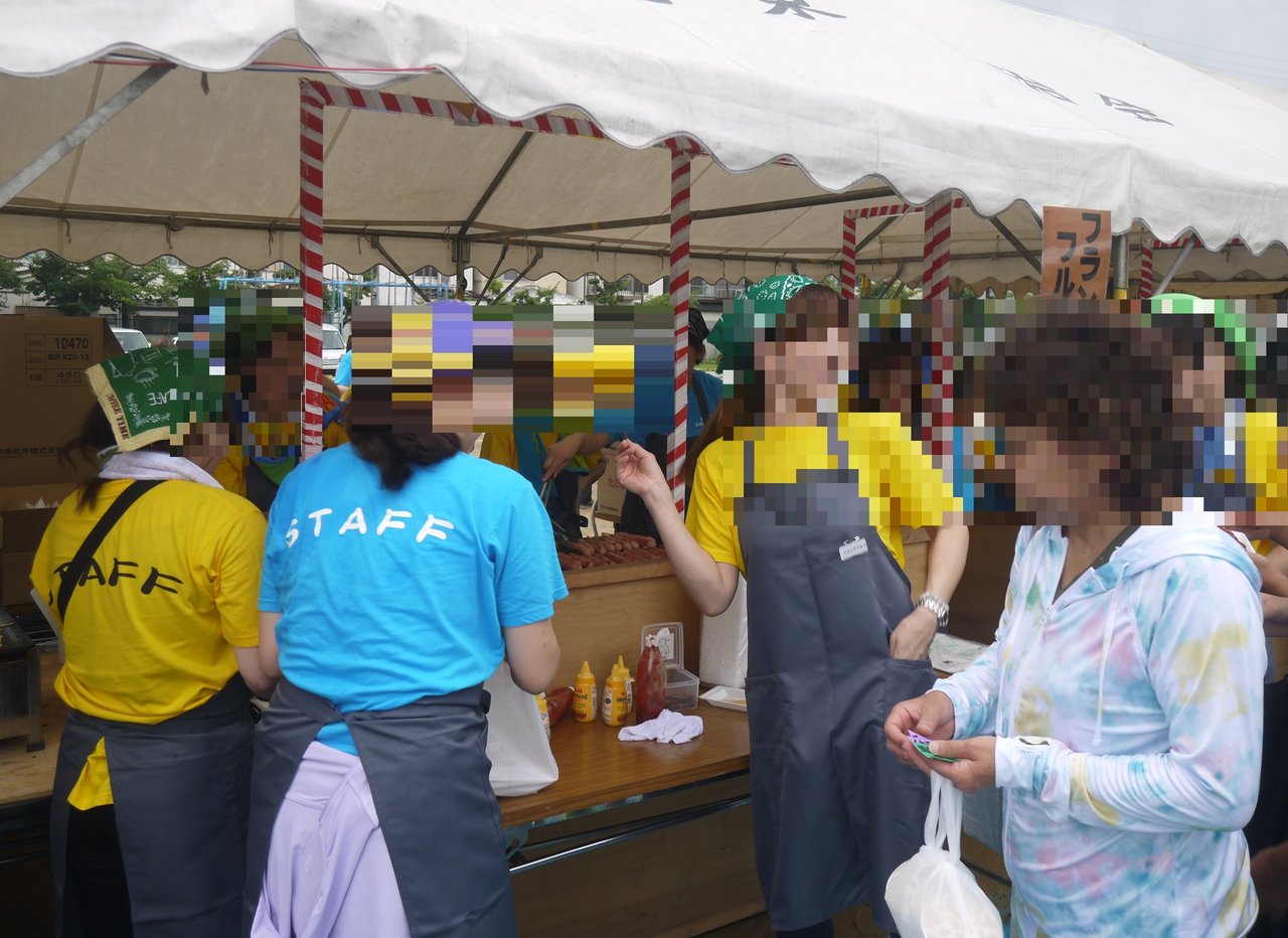 同じ日に夏祭りが行われた成美小学校はグラウンドがかなりぬかるんでいたので、足場がそれほど悪くないのは意外でした。水はけの良さは小学校によって違うんですかね~。