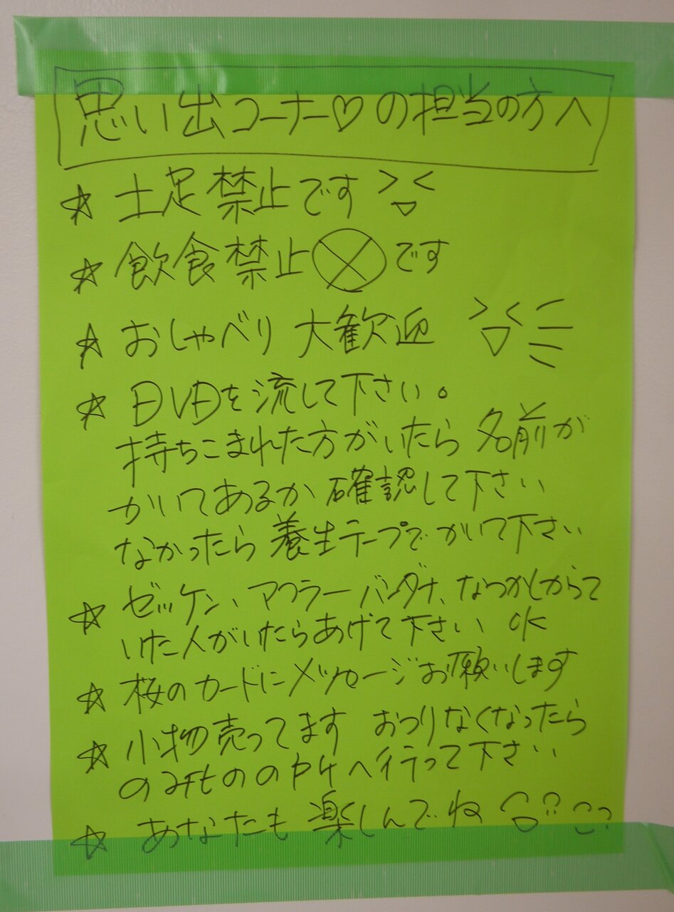 隣のひだまりルームでは「思い出コーナー」が用意されていました。