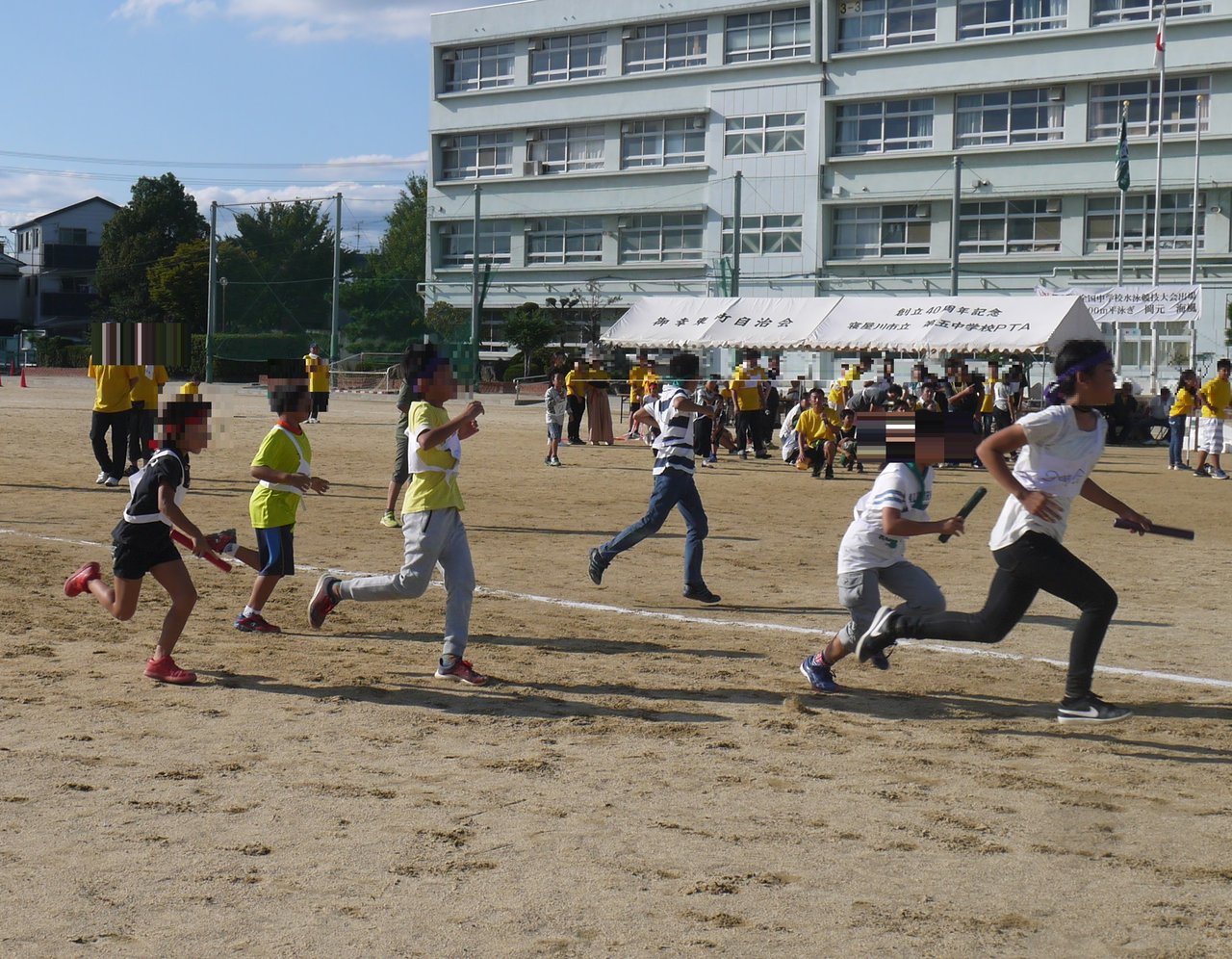 寝屋川市立第五中学校のグラウンド(上神田2丁目)で10月8日(日曜日)に「第31回御幸東町運動会」が開かれました。