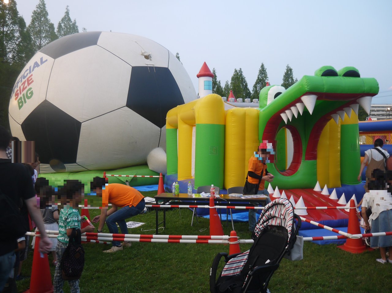 空気で含ませるタイプの遊具が置かれている「ねやパー」の様子です。