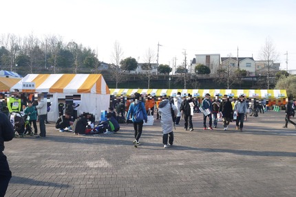 成田山不動尊の駐車場では、給食コーナーがありました。サンドイッチや飴ちゃんが用意されています。食べ物の後に飲み物が用意されているという親切ぶりです。(大会の司会の方によると、これは絶妙な順番なのだとか。)