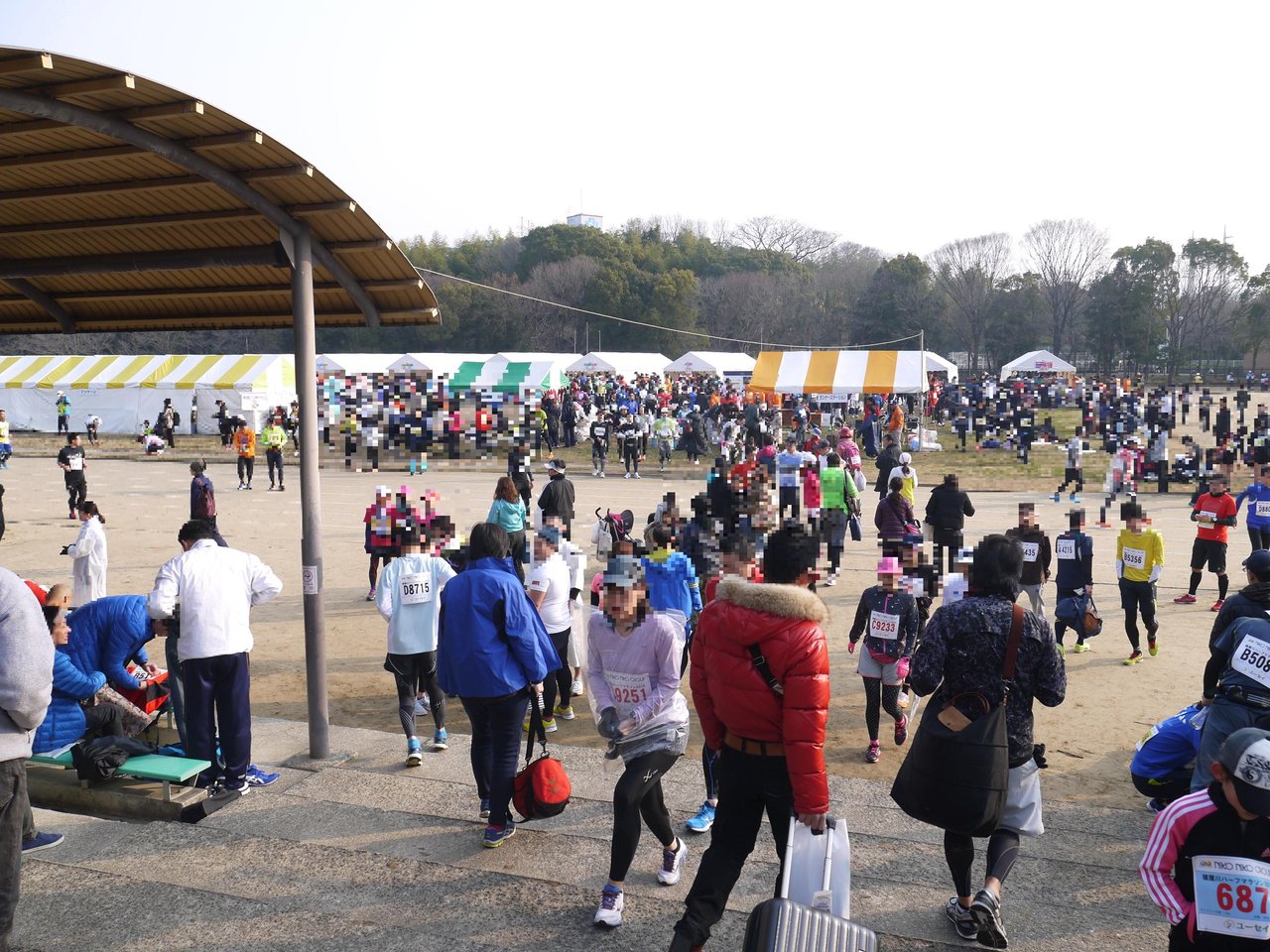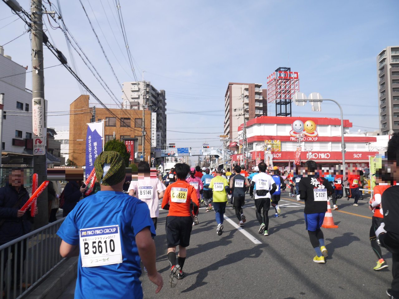 ハーフマラソンは、ここからまだ10km以上も走る(寝屋川公園前から萱島まで往復)なんて本当に信じられません!周りはハーフマラソンのランナーばかりです。