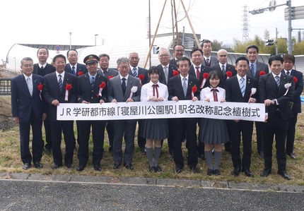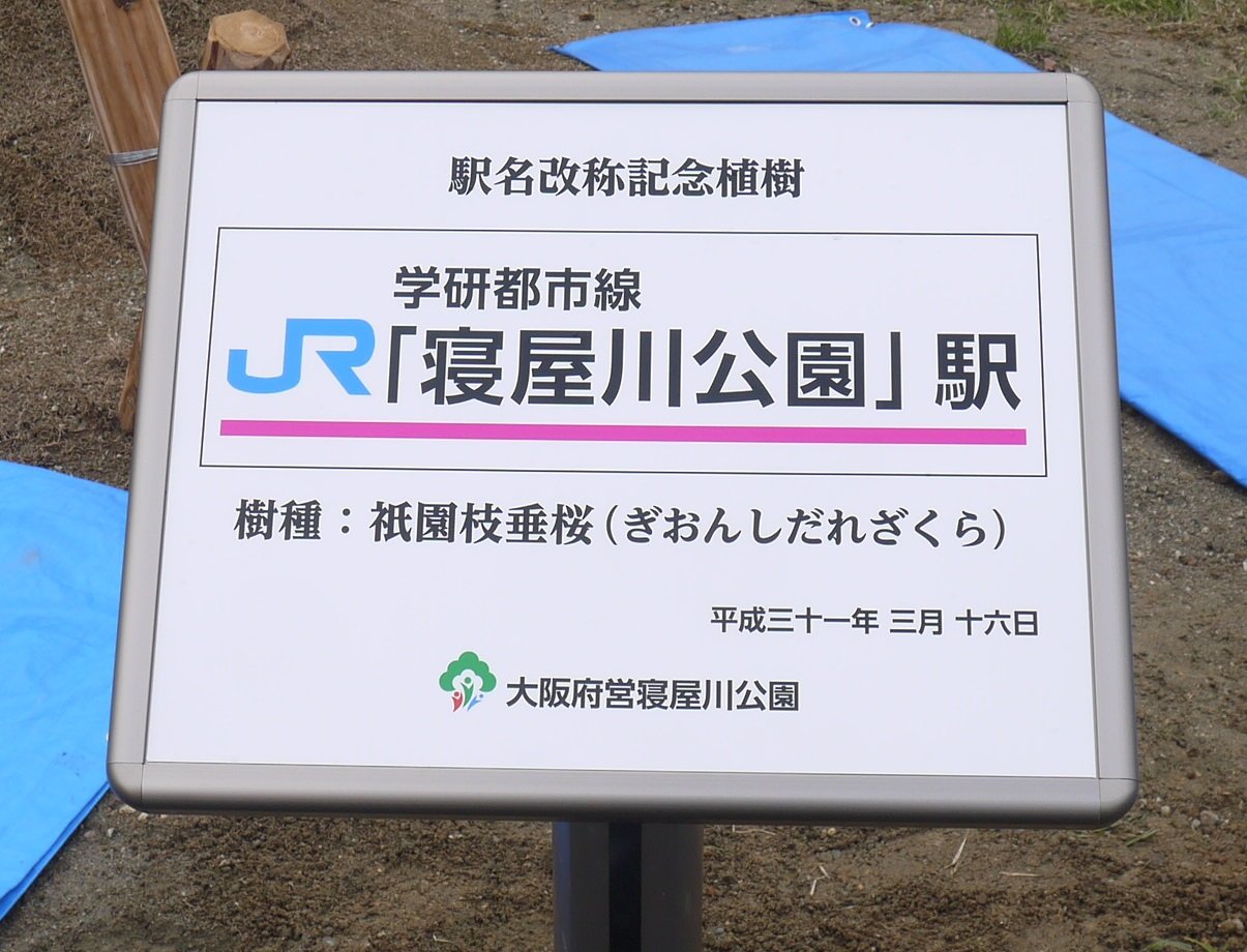 駅名改称は、寝屋川市とJR西日本が2018年11月に締結したまちづくり連携協定に基づくもので、駅名改称を契機に、駅近くの地域資源である寝屋川公園を活かし、駅周辺の新たなまちづくりにつなげていこうというものです。