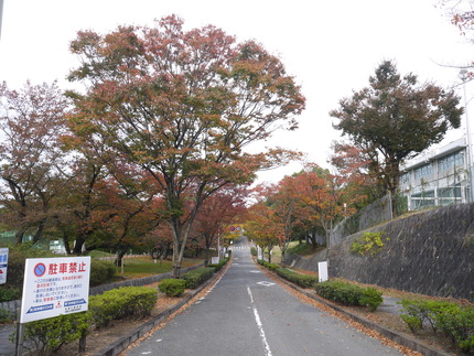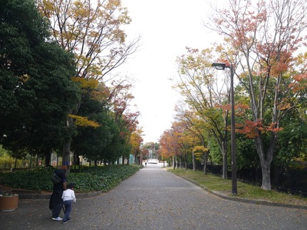 陸上競技場と野球場の間にあるケヤキ並木が、綺麗な光景になっていました。