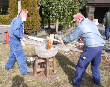 餅つきが体験できるだけでなく無料でぜんざいが配られるというもので、なかなか新年らしいイベントです。