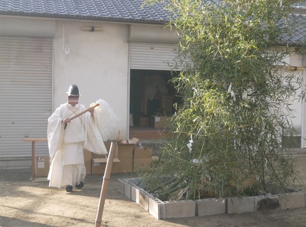 儀式の途中で宮司さんと思しき人が本殿から出てきて祈祷を行いました。