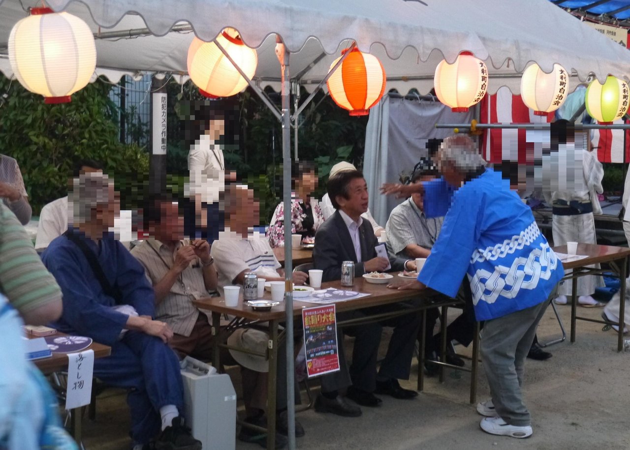 ベル大利商店街を抜けて大利神社通商店街に入ると、スピーカーから大利公園で行われている盆踊り大会の様子が聞こえてきます。さっそく祭りの雰囲気ですね~
