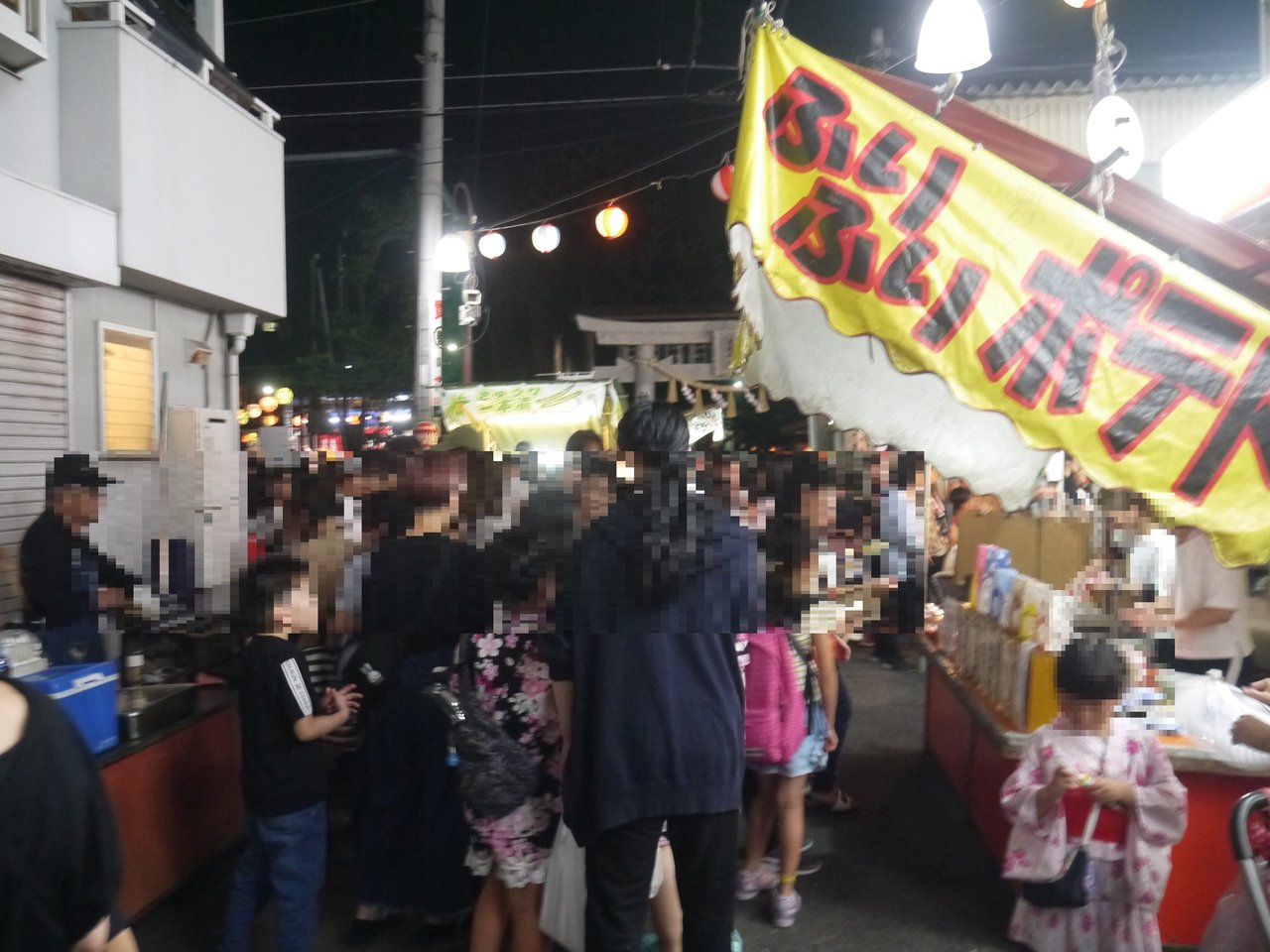 大利神社に近づくにつれて模擬店の種類(くじびき、1円玉落とし、ふりふりポテトなど)は増えて賑やかになってきます。
