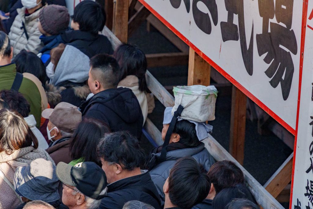 来場者のみなさんも福を授かろうと紙袋を高く掲げています!