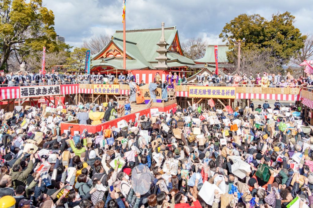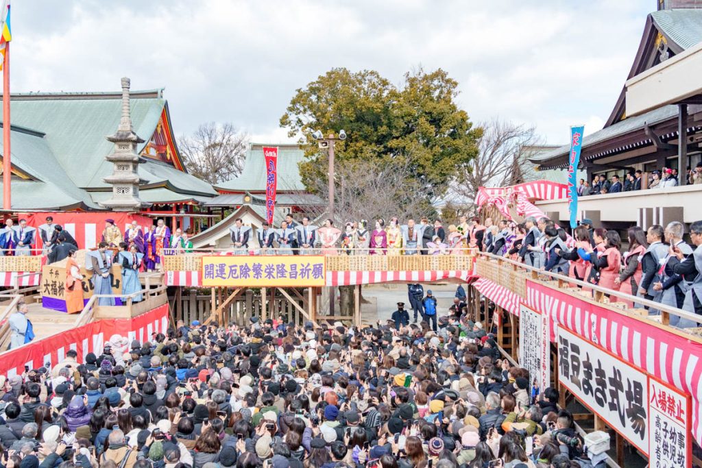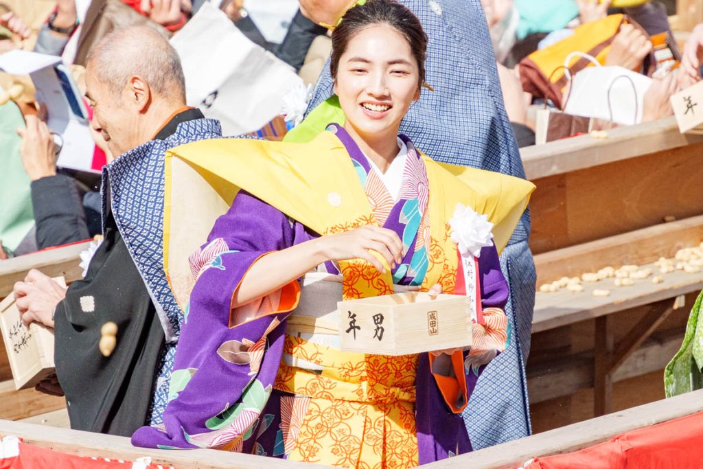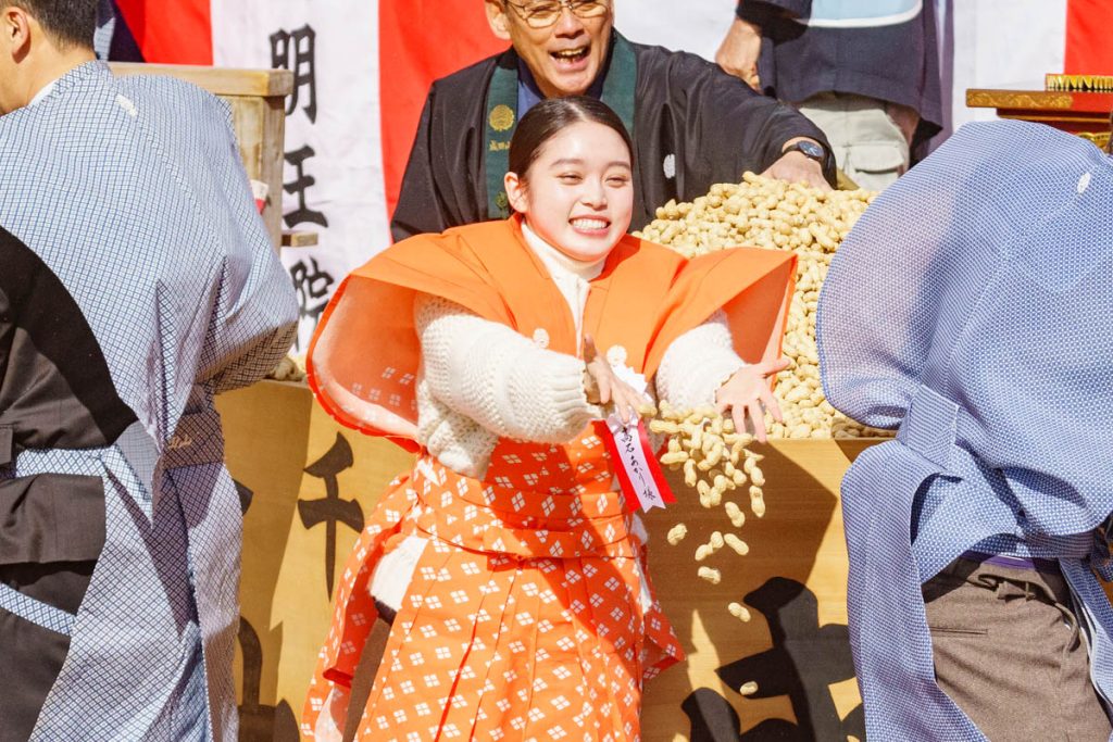 「福は〜内〜!」の掛け声とともに大量の豆が宙を舞う!