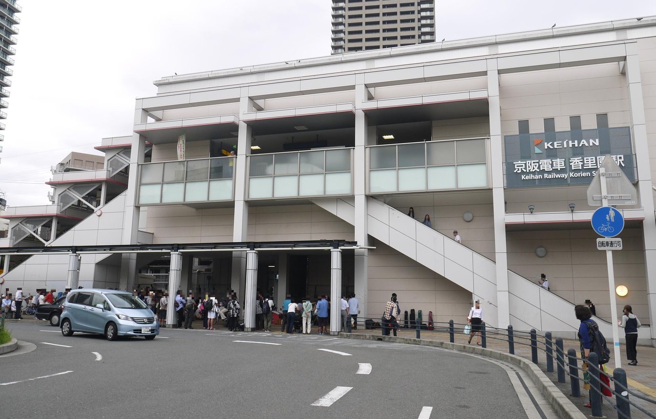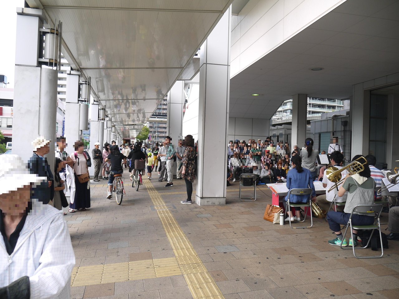 16時頃にコンサートが始まると、スーパーのライフ香里園店付近まで楽器の音が鳴り響き、駅の階段付近には多くの見物人が集まりました。