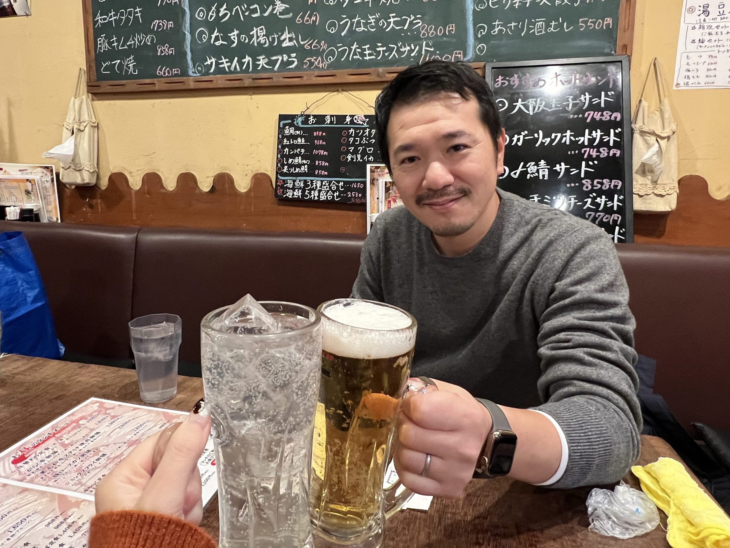 私がレモンサワー、北浦社長が生中です。