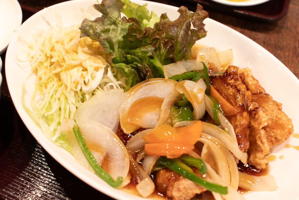 日替わり定食Bの「揚げ豚の甘酢あんかけ」