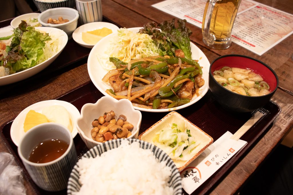 日替わり定食A。この日は「鶏のチンジャオロース風炒め」