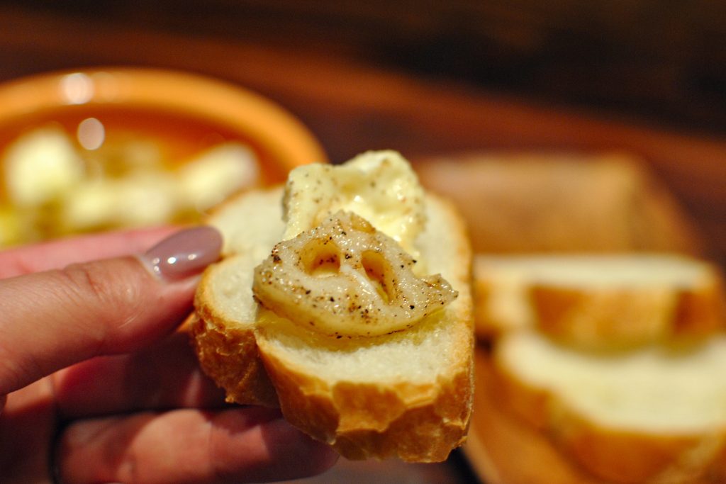 チーズのまろやかさ、オイルの風味、れんこんの食感…口福ってこの事です!