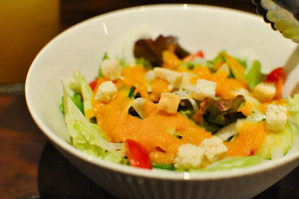 シャッキシャキの野菜に、自家製のニンジンドレッシングがめっちゃ合う。