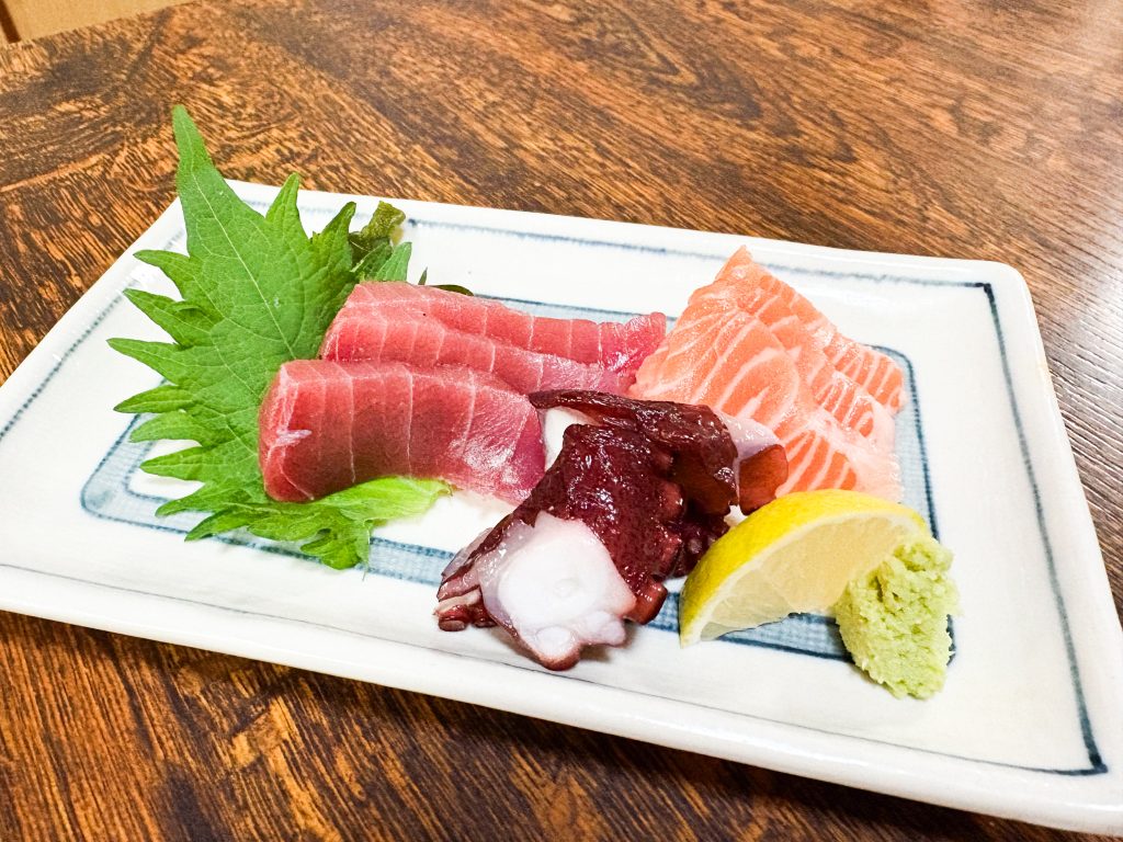 「どて焼き(220円)」「造り三品盛合せ(880円)」です!