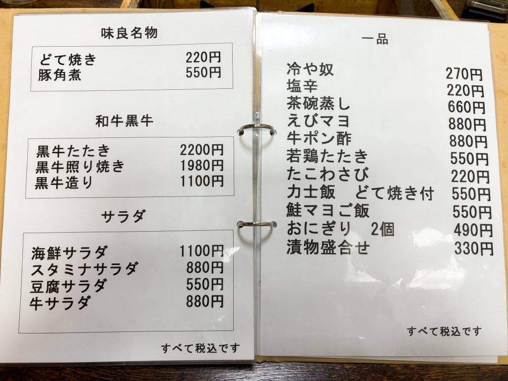 付き出し、お刺身ももちろん美味しいですが、おすすめは名物の「どて焼き」。