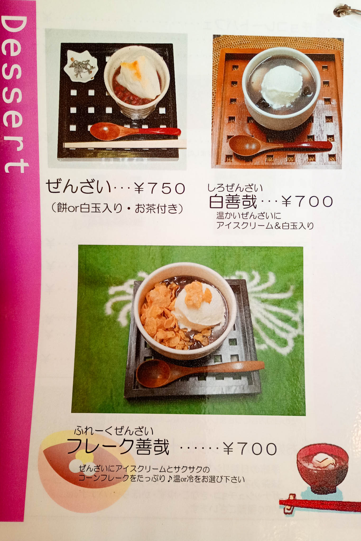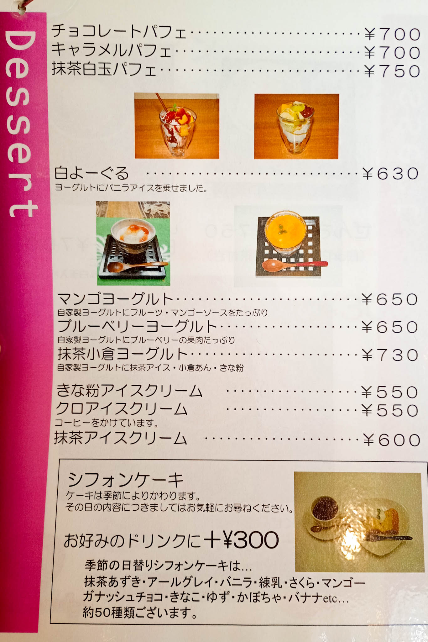 パフェやヨーグルト、アイスクリームにシフォンケーキにぜんざい。