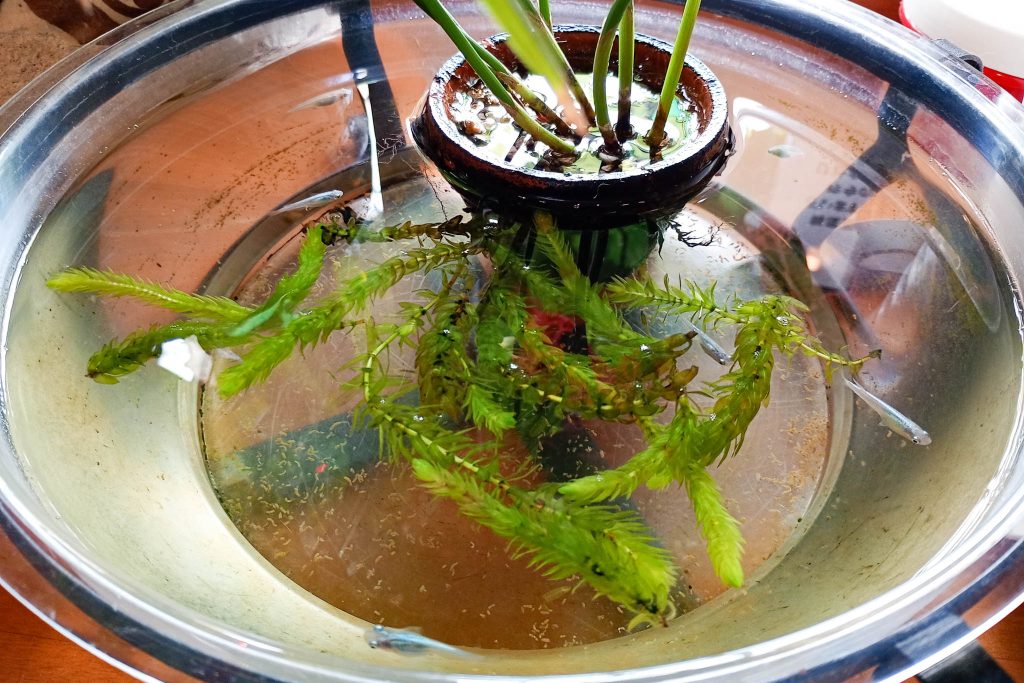 おしゃれな鉢に小さなお魚さんも泳いでいました。